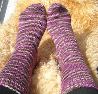 Så jag stickade äntligen klart mitt nionde par sockar för 13 socks in 2013 gruppen på Ravelry. Det finns inte så mycket att säga om dem. jag använde en 2,25 mm rundsticka och Qualitas sockgarn i färgen 1350. Jag improviserade dem med Tootitosh uppläggning och tåökning, som alltid. Väldigt enkel stickning. Jag använde 58 gram ab garnet och jag tycker verkligen om färgen på dessa!!